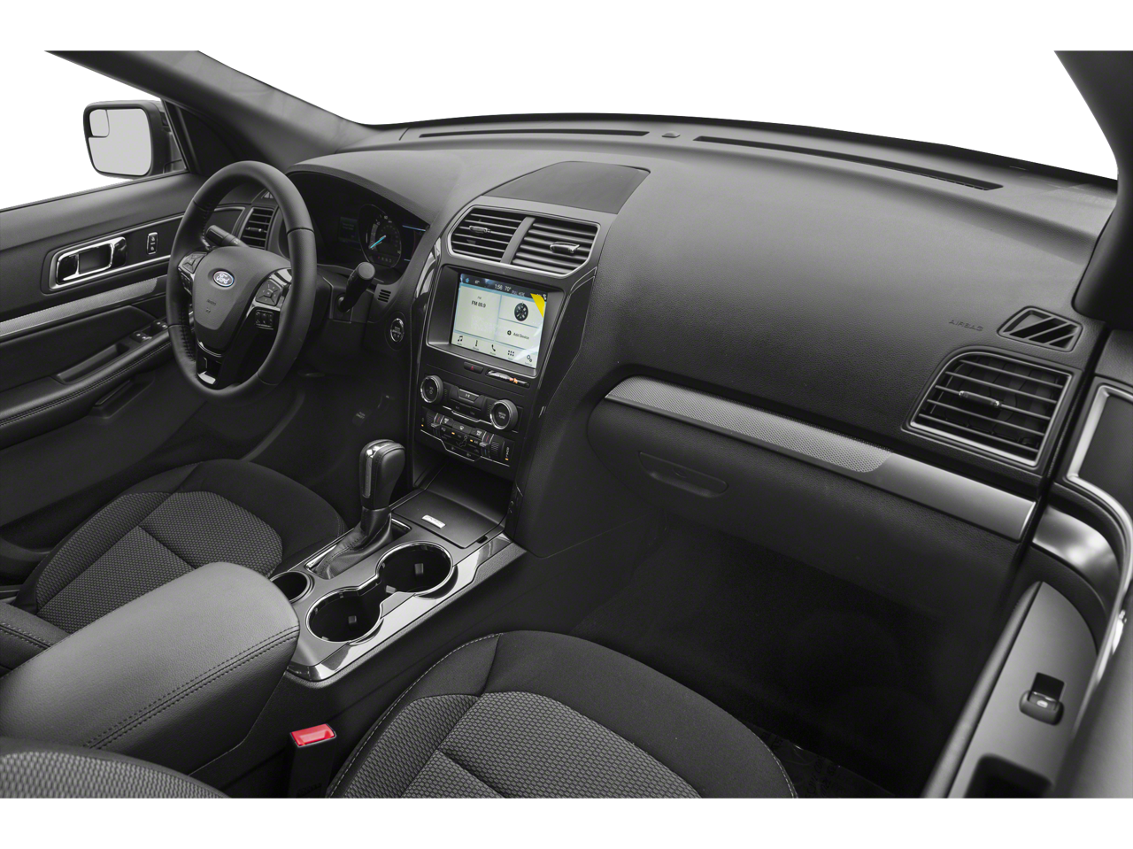 3.39 Non-Limited-Slip Axle Ratio, 3rd row seats: split-bench, 4-Wheel Disc Brakes, 6 Speakers, ABS brakes, Air Conditioning, Alloy wheels, AM/FM radio: SiriusXM, AM/FM Stereo, Brake assist, Bumpers: body-color, Compass, Delay-off headlights, Driver door bin, Driver vanity mirror, Dual front impact airbags, Dual front side impact airbags, Electronic Stability Control, Emergency communication system: 911 Assist, Equipment Group 200A, Exterior Parking Camera Rear, Four wheel independent suspension, Front anti-roll bar, Front Bucket Seats, Front Center Armrest, Front License Plate Bracket, Front reading lights, Fully automatic headlights, Heated door mirrors, Illuminated entry, Knee airbag, Leather steering wheel, Low tire pressure warning, Occupant sensing airbag, Outside temperature display, Overhead airbag, Overhead console, Panic alarm, Passenger door bin, Passenger vanity mirror, Power door mirrors, Power driver seat, Power passenger seat, Power steering, Power windows, Rear air conditioning, Rear anti-roll bar, Rear Parking Sensors, Rear reading lights, Rear seat center armrest, Rear window defroster, Rear window wiper, Remote keyless entry, Roof rack: rails only, Security system, Speed control, Speed-sensing steering, Speed-Sensitive Wipers, Split folding rear seat, Spoiler, Steering wheel mounted audio controls, SYNC Communication & Entertainment System, Tachometer, Telescoping steering wheel, Tilt steering wheel, Traction control, Trip computer, Unique Cloth Bucket Seats, Variably intermittent wipers, Wheels: 18 5-Spoke Sparkle Silver-Painted Alum. Black Metallic 2019 Ford Explorer XLT FWD 6-Speed Automatic with Select-Shift 3.5L 6-Cylinder SMPI DOHC