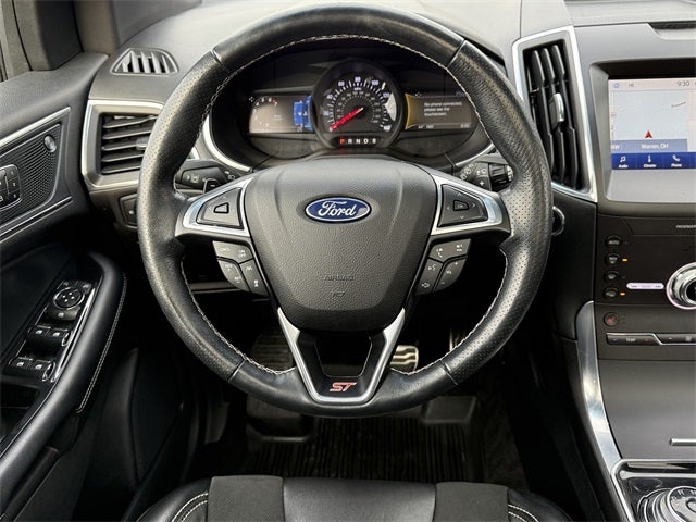Ford Blue Certified Certified, AWD, 110V/150W AC Power Outlet, 12 Speakers, 3.39 Axle Ratio, 4-Wheel Disc Brakes, ABS brakes, Air Conditioning, Alloy wheels, AM/FM radio: SiriusXM, Auto High-beam Headlights, Auto tilt-away steering wheel, Auto-dimming Rear-View mirror, Automatic temperature control, Brake assist, Bumpers: body-color, Compass, Convenience Package, Delay-off headlights, Driver door bin, Driver vanity mirror, Dual front impact airbags, Dual front side impact airbags, Electronic Stability Control, Emergency communication system: SYNC 3 911 Assist, Foot-Activated Hands-Free Liftgate, FordPass Connect, Four wheel independent suspension, Front anti-roll bar, Front Bucket Seats, Front Center Armrest w/Storage, Front dual zone A/C, Front fog lights, Front reading lights, Fully automatic headlights, Garage door transmitter, Heated door mirrors, Heated front seats, Illuminated entry, Knee airbag, Leather-Trimmed Heated ST Bolstered Bucket Seats, Low tire pressure warning, Memory seat, Occupant sensing airbag, Outside temperature display, Overhead airbag, Overhead console, Panic alarm, Passenger door bin, Passenger vanity mirror, Perimeter Alarm, Power door mirrors, Power driver seat, Power Liftgate, Power passenger seat, Power steering, Power windows, Radio: B&O Sound System by Bang & Olufsen, Rain sensing wipers, Rear anti-roll bar, Rear reading lights, Rear seat center armrest, Rear window defroster, Rear window wiper, Remote keyless entry, Remote Start System, Security system, SiriusXM Radio, Speed control, Speed-Sensitive Wipers, Split folding rear seat, Spoiler, Steering wheel memory, Steering wheel mounted audio controls, SYNC 3 Communications & Entertainment System, Tachometer, Telescoping steering wheel, Tilt steering wheel, Traction control, Trip computer, Turn signal indicator mirrors, Universal Garage Door Opener (UGDO), Variably intermittent wipers, Wheels: 20 Bright-Machined Aluminum, Wireless Charging Pad, AWD. Star White Metallic Tri-Coat 2020 Ford Edge ST AWD 8-Speed Automatic 2.7L V6 EcoBoost