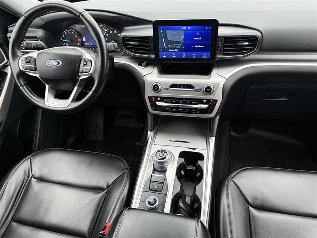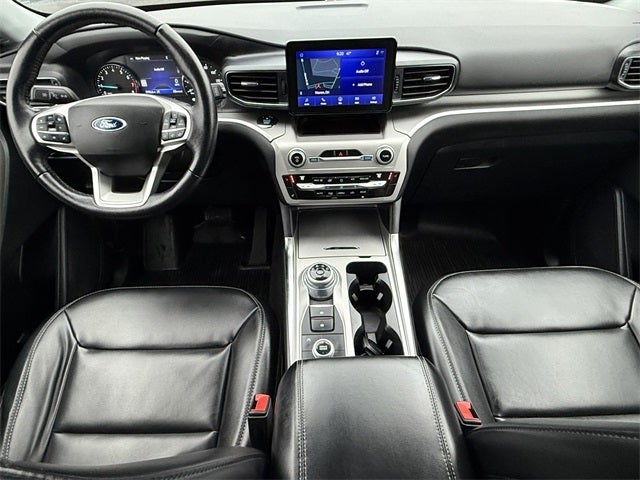 Ford Gold Certified Certified, 4WD, 1st Row Heated Seats, 3.58 Non-Limited-Slip Rear Axle Ratio, 3rd row seats: bench, 4-Wheel Disc Brakes, 6 Speakers, ABS brakes, Acoustic-Laminated Front Side Windows, ActiveX Captain's Chairs, Air Conditioning, Alloy wheels, AM/FM radio: SiriusXM, AM/FM Stereo, Auto High-beam Headlights, Automatic temperature control, Brake assist, Bumpers: body-color, Compass, Delay-off headlights, Driver door bin, Driver vanity mirror, Dual front impact airbags, Dual front side impact airbags, Electronic Stability Control, Emergency communication system: SYNC 3 911 Assist, Equipment Group 202A, Evasive Steering Assist, Exterior Parking Camera Rear, Ford Co-Pilot360 Assist+, FordPass Connect, Four wheel independent suspension, Front & Second Row Floor Liners (16B), Front anti-roll bar, Front Bucket Seats, Front Center Armrest, Front dual zone A/C, Front reading lights, Fully automatic headlights, Heated door mirrors, Heated front seats, Heated Steering Wheel, Illuminated entry, Intelligent Adaptive Cruise Control, Knee airbag, Leather steering wheel, LED Fog Lamps, Low tire pressure warning, Occupant sensing airbag, Outside temperature display, Overhead airbag, Overhead console, Panic alarm, Passenger door bin, Passenger vanity mirror, Power door mirrors, Power driver seat, Power Liftgate, Power passenger seat, Power steering, Power windows, Rear air conditioning, Rear anti-roll bar, Rear reading lights, Rear window defroster, Rear window wiper, Remote keyless entry, Remote Start System, Roof rack: rails only, Security system, Speed control, Speed Sign Recognition, Speed-sensing steering, Speed-Sensitive Wipers, Split folding rear seat, Spoiler, Steering wheel mounted audio controls, SYNC 3 Communications & Entertainment System, SYNC 3/Apple CarPlay/Android Auto, Tachometer, Telescoping steering wheel, Tilt steering wheel, Traction control, Trip computer, Unique Cloth Captain's Chairs, Variably intermittent wipers, Voice-Activated Touchscreen Navigation System, Wheels: 18 5-Spoke Sparkle Silver-Painted Alum, 4WD. Agate Black Metallic 2021 Ford Explorer XLT 4WD 10-Speed Automatic 2.3L EcoBoost I-4