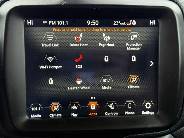 Ford Blue Certified Certified, 1-Year SiriusXM Guardian Trial, 115V Auxiliary Power Outlet, 17 x 7.0 Aluminum Wheels, 3.734 Final Drive Ratio, 4-Wheel Disc Brakes, 5-Year SiriusXM Traffic Service, 6 Speakers, 8.4 Touchscreen Display, 80th Edition Premium Cloth Bucket Seats, ABS brakes, Air Conditioning, Alloy wheels, AM/FM radio: SiriusXM, Anti-whiplash front head restraints, Apple CarPlay/Android Auto, Automatic temperature control, Brake assist, Compass, Convenience Group, Delay-off headlights, Driver door bin, Driver vanity mirror, Dual front impact airbags, Dual front side impact airbags, Electronic Stability Control, Emergency communication system: SiriusXM Guardian, Four wheel independent suspension, Front anti-roll bar, Front Bucket Seats, Front Center Armrest, Front dual zone A/C, Front fog lights, Front reading lights, Fully automatic headlights, Gloss Black Steering Wheel Bezel, GPS Navigation, HD Radio, Heated door mirrors, Heated Front Seats, Heated Steering Wheel, Illuminated entry, Knee airbag, Low tire pressure warning, Manual Adjust 4-Way Front Passenger Seat, Normal Duty Suspension, Occupant sensing airbag, Outside temperature display, Overhead airbag, Panic alarm, ParkView Rear Back-Up Camera, Passenger door bin, Passenger vanity mirror, Power 4-Way Driver Lumbar Adjust, Power Adjust 8-Way Driver Seat, Power door mirrors, Power steering, Power windows, Premium Cloth Bucket Seats, Protective Clear Plastic Film - 2 (DISC), Quick Order Package 2XY 80th Edition, Radio data system, Radio: Uconnect 4 w/7 Display, Rear anti-roll bar, Rear window defroster, Rear window wiper, Remote keyless entry, Roof rack: rails only, Satin Granite Roof Rails, Security system, SiriusXM Travel Link, Speed control, Split folding rear seat, Spoiler, Steering wheel mounted audio controls, Tachometer, Telescoping steering wheel, Tilt steering wheel, Tonneau Cover, Traction control, Trip computer, Variably intermittent wipers, Voltmeter. Slate Blue Pearlcoat 2021 Jeep Renegade 80th Edition 4WD 9-Speed 948TE Automatic 2.4L I4