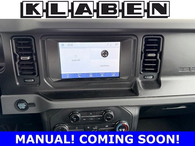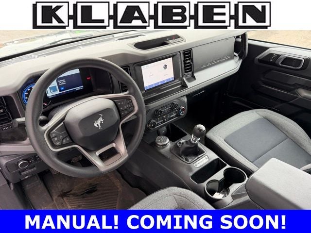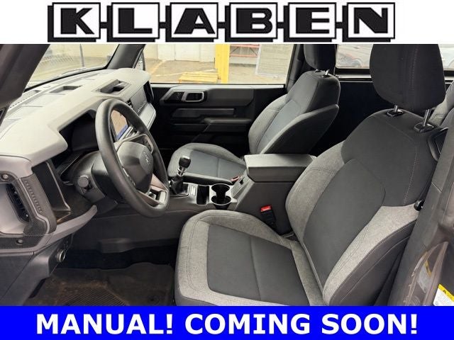 Ford Blue Certified Certified, 3.73 Axle Ratio, 4-Wheel Disc Brakes, 4.46 Axle Ratio, 6 Speakers, ABS brakes, Air Conditioning, AM/FM radio: SiriusXM with 360L, AM/FM Stereo, Auto High-beam Headlights, Brake assist, Cargo Area Protector, Cloth Bucket Seats, Compass, Convertible HardTop, Convertible roof lining, Delay-off headlights, Driver door bin, Driver vanity mirror, Dual front impact airbags, Dual front side impact airbags, Electronic Stability Control, Emergency communication system: 911 Assist, Equipment Group 101A Standard Package, Exterior Parking Camera Rear, Front & Rear Floor Liners, Front & Rear Splash Guards, Front anti-roll bar, Front Bucket Seats, Front Center Armrest, Front reading lights, Front wheel independent suspension, Fully automatic headlights, Glass rear window, Heated door mirrors, Illuminated entry, Integrated roll-over protection, Low tire pressure warning, Occupant sensing airbag, Outside temperature display, Overhead airbag, Overhead console, Panic alarm, Passenger door bin, Passenger vanity mirror, Power door mirrors, Power steering, Power windows, Radio data system, Rear window defroster, Rear window wiper, Remote keyless entry, Security system, SiriusXM Radio w/360L, Speed control, Split folding rear seat, Steering wheel mounted audio controls, SYNC 4, Tachometer, Telescoping steering wheel, Tilt steering wheel, Traction control, Trip computer, Variably intermittent wipers, Wheels: 16 Bright Polished Silver-Painted Steel. Carbonized Gray Metallic 2022 Ford Bronco 4WD 7-Speed Manual 2.3L EcoBoost I-4