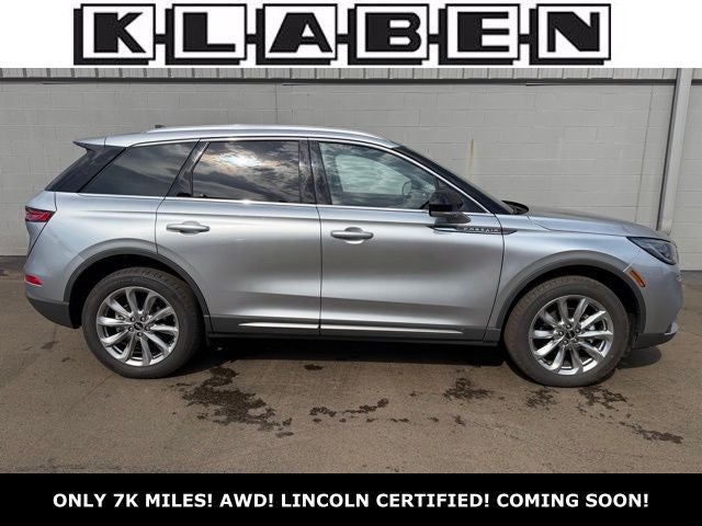 Lincoln Signature Certification Certified, 10 Speakers, 18 Bright Machined Aluminum Wheels, 19 Premium Painted Aluminum Wheels, 3.81 Axle Ratio, 4-Wheel Disc Brakes, 60/40 EasyFold Rear Seat w/Power Seatback Release, ABS brakes, Air Conditioning, All-Weather Floor Liners w/Fr&Rr Carpet Floor Mats, Alloy wheels, AM/FM radio: SiriusXM, Ambient Lighting, Auto High-beam Headlights, Auto-dimming Rear-View mirror, Automatic temperature control, Brake assist, Bumpers: body-color, Compass, Convenience Package, Delay-off headlights, Driver door bin, Driver vanity mirror, Dual front impact airbags, Dual front side impact airbags, Electronic Stability Control, Elements Package, Emergency communication system: 911 Assist, Equipment Group 101A, Four wheel independent suspension, Front anti-roll bar, Front Bucket Seats, Front Center Armrest, Front dual zone A/C, Front reading lights, Fully automatic headlights, Heated door mirrors, Heated front seats, Heated Rear Seat, Heated Steering Wheel, Heated/Ventilated Driver & Front Passenger Seats, Illuminated entry, Knee airbag, Low tire pressure warning, Memory seat, Micro-Perforated Lincoln Soft Touch Seats, Occupant sensing airbag, Outside temperature display, Overhead airbag, Overhead console, Panic alarm, Panoramic Vista Roof w/Power Shade, Passenger door bin, Passenger vanity mirror, Power door mirrors, Power driver seat, Power Liftgate, Power passenger seat, Power steering, Power windows, Premium Leather-Trimmed Comfort Seats, Premium Package, Radio data system, Radio: Lincoln Premium Audio System w/MP3, Rain Sensing Wipers, Rear anti-roll bar, Rear Parking Sensors, Rear reading lights, Rear seat center armrest, Rear window defroster, Rear window wiper, Remote keyless entry, Roof rack: rails only, Security system, SiriusXM Radio, Speed control, Speed-sensing steering, Speed-Sensitive Wipers, Split folding rear seat, Spoiler, Steering wheel mounted A/C controls, Steering wheel mounted audio controls, SYNC 3 Communications & Entertainment System, Tachometer, Telescoping steering wheel, Tilt steering wheel, Traction control, Trip computer, Universal Garage Door Opener, Variably intermittent wipers, Ventura Leather-Wrapped Steering Wheel, Voice-Activated Touchscreen Navigation System, Windshield Wiper De-Icer. Radiance Metallic 2022 Lincoln Corsair Standard AWD 8-Speed Automatic 2.0L I4