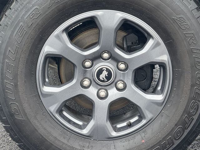 Ford Gold Certified Certified, 4-Wheel Disc Brakes, 7 Speakers, ABS brakes, Air Conditioning, Alloy wheels, AM/FM radio: SiriusXM with 360L, AM/FM Stereo, Auto High-beam Headlights, Brake assist, Carbonized Gray Molded-In-Color Hard Top, Compass, Delay-off headlights, Driver door bin, Driver vanity mirror, Dual front impact airbags, Dual front side impact airbags, Electronic Stability Control, Emergency communication system: 911 Assist, Equipment Group 222A Mid Package, Exterior Parking Camera Rear, Front & Rear Floor Liners w/o Carpet Floor Mats, Front anti-roll bar, Front Bucket Seats, Front Center Armrest, Front fog lights, Front reading lights, Front Row Top Panels Storage Bag, Front wheel independent suspension, Fully automatic headlights, Hard Top Sound Deadening Headliner, Heated door mirrors, Illuminated entry, Integrated roll-over protection, Leather Shift Knob, LED Signature Lighting, Low tire pressure warning, Marine Grade Vinyl Bucket Seats, Occupant sensing airbag, Outside temperature display, Overhead airbag, Overhead console, Panic alarm, Passenger door bin, Passenger vanity mirror, Powder Coated Tube Step, Power door mirrors, Power steering, Power windows, Radio data system, Rear-Window Defroster & Washer, Remote keyless entry, Security system, SiriusXM Radio w/360L, Speed control, Split folding rear seat, Steering wheel mounted audio controls, SYNC 4, Tachometer, Telescoping steering wheel, Tilt steering wheel, Traction control, Trip computer, Variably intermittent wipers, Wheels: 17 Carbonized Gray-Painted Aluminum. Iconic Silver Metallic 2024 Ford Bronco Big Bend 4WD 10-Speed Automatic 2.3L EcoBoost I-4
